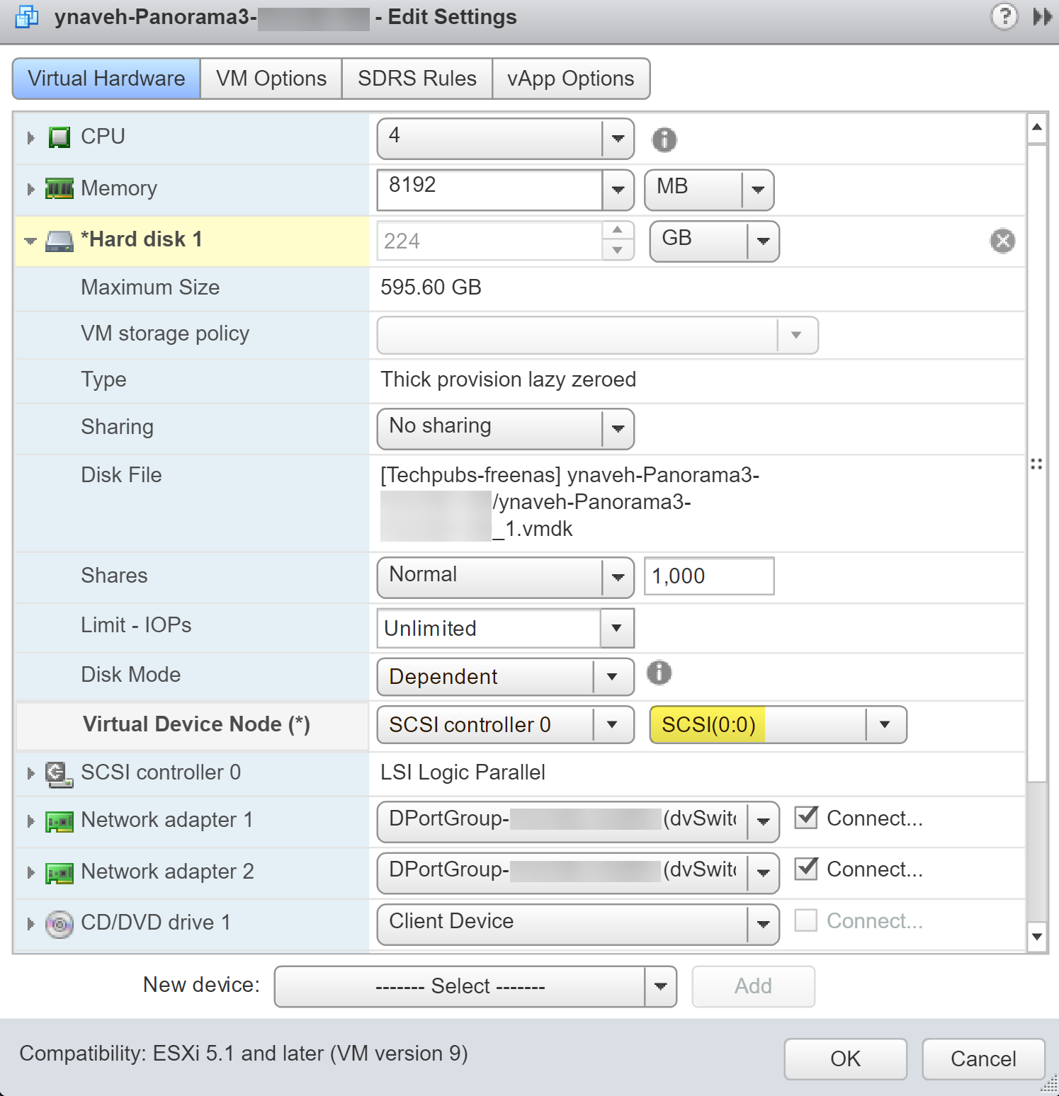 2. Select SCSI(0:0) as the Virtual Device Node.