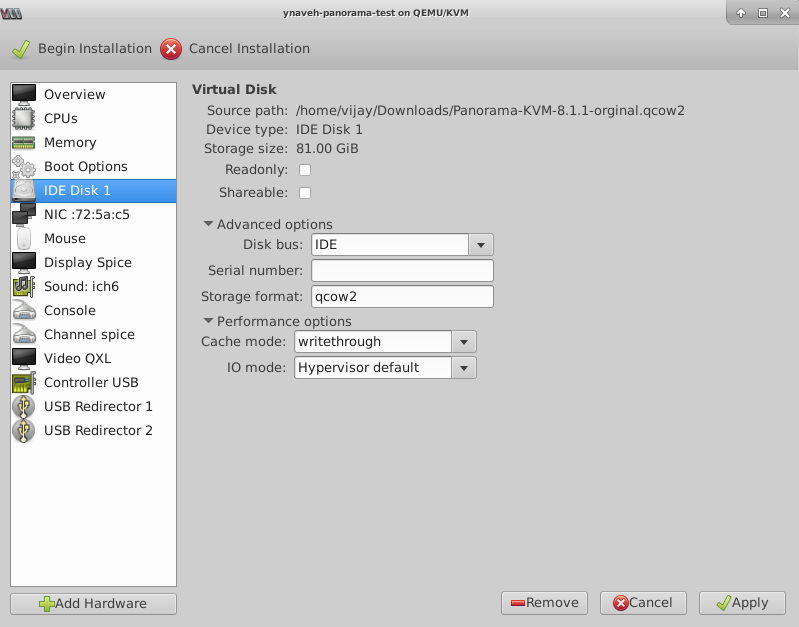 - Disk Bus—VirtIO or IDE, depending on your configuration.