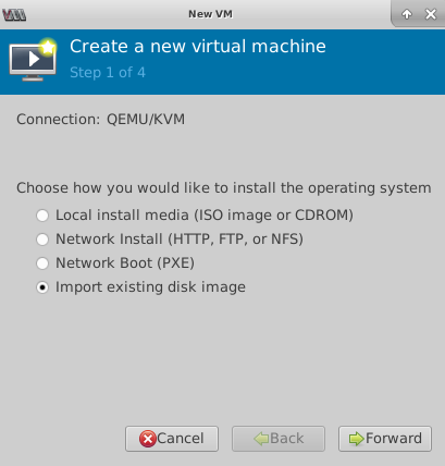 virtual appliance image for KVM to the Virtual Machine Manager.