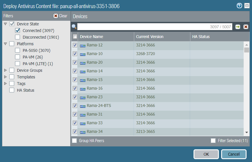 - Select PanoramaDevice DeploymentDynamic Updates and Install the dynamic update.