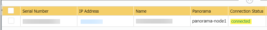 Click Commit and Commit to Panorama to finish adding the firewall.Select PanoramaInterconnectPanorama Nodes and Synchronize Config.Verify that the newly added firewall is Connected.- Select PanoramaInterconnectDevices.Find the firewall you added, and verify that the Connection Status column displays Connected.