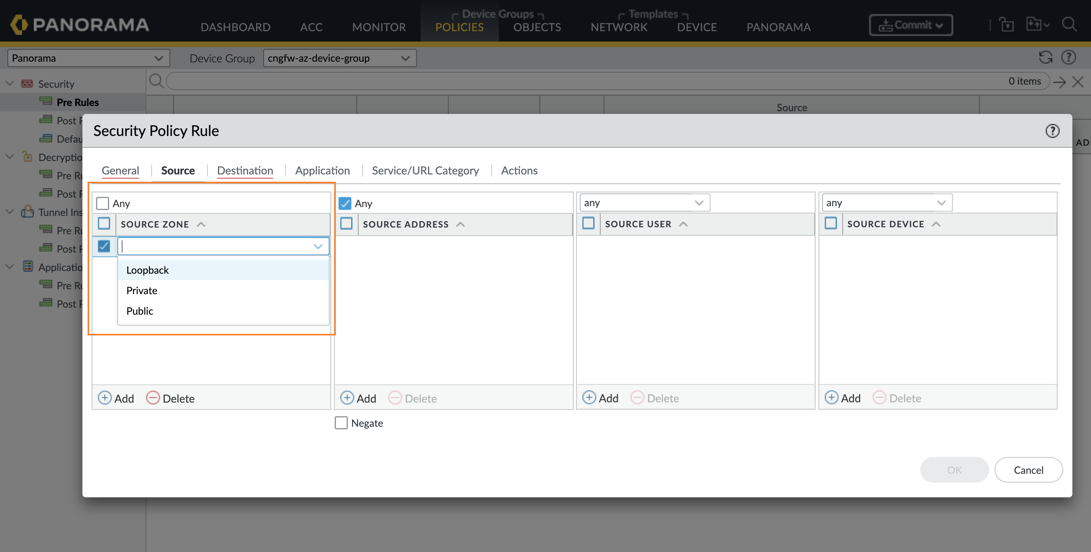 The Panorama plugin for Azure 5.1.2 adds support for configuring your security policy with service route traffic from Loopback zone to Private or Public zone.