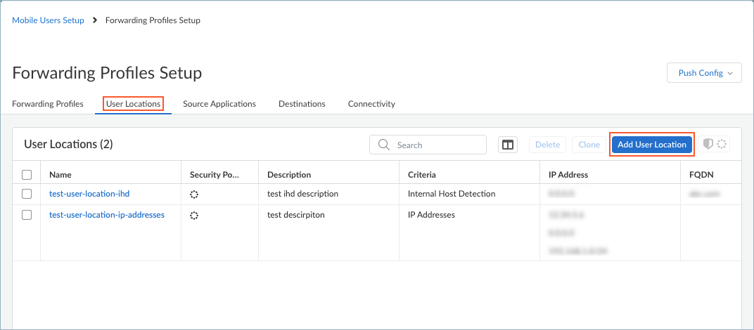 Create your forwarding profile.Push the configuration by selecting Push ConfigPush. This action will make your forwarding profile available for selection in the Prisma Access Agent Setup page.