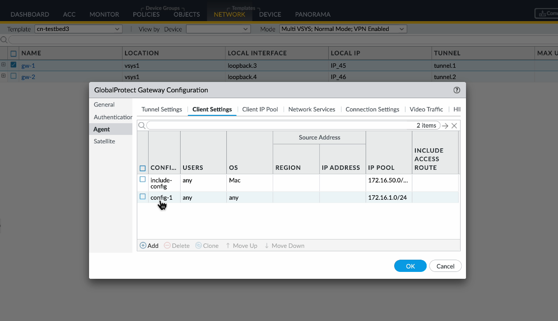 Click OK to save the configuration and then click OK to save the GlobalProtect gateway configuration settings.Commit and push your configuration by selecting CommitCommit and Push.Click Commit and Push.