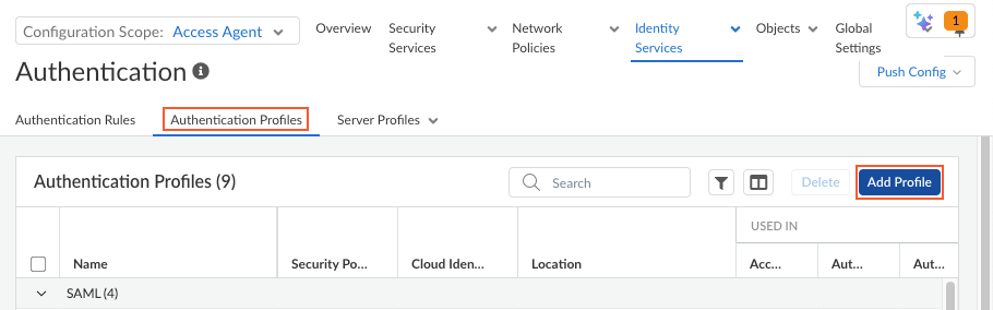 The authentication profile specifies the server profile that the Portal or gateways use when they authenticate users. On a portal or gateway, you can assign one or more authentication profiles to one or more client authentication profiles.