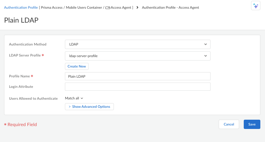 Set Up LDAP Authentication for Prisma Access Agent (Strata Cloud Manager Managed Deployments)