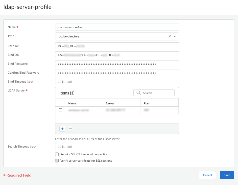 1. Create an LDAP server profile that defines the connection to your directory server. (Skip this step if you have an existing LDAP server profile.)