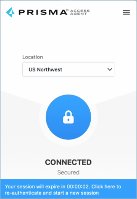 After successful authentication, the user will be connected to the Prisma Access Agent.