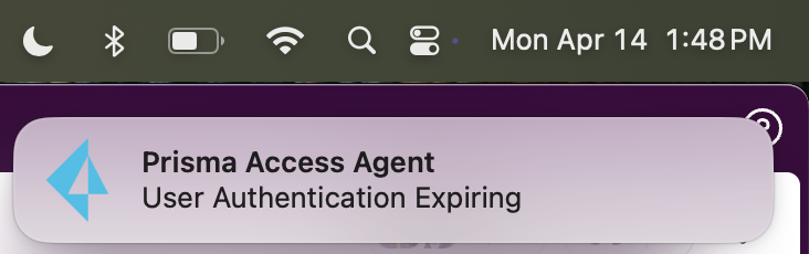 frequent logins. Users receive a notification on their Prisma Access Agent app 60