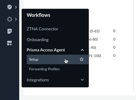 1. Select ConfigurationNGFW and Prisma AccessConfiguration ScopeAccess AgentSetupPrisma Access Agent.