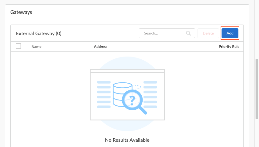By default, all the gateways in your Prisma Access locations are available to users. If you have on-premises gateways (internal or external) that you want your users to connect to, you can add those gateways here.