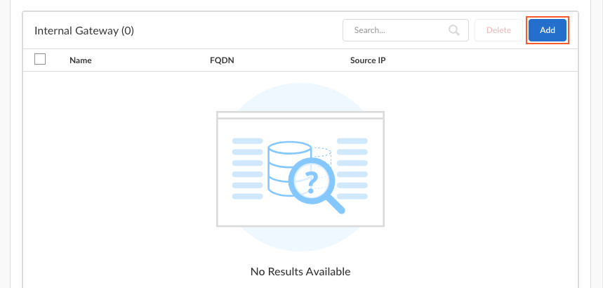 5. Add an internal gateway. Follow the steps for adding an external gateway. The steps are similar.