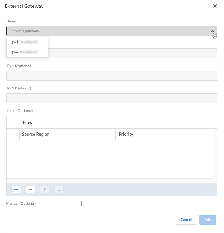 4. (Optional) Select Manual to identify the external gateway as a manual gateway.