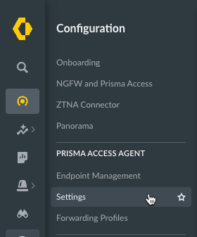 2. Select ConfigurationPrisma Access AgentSettings.