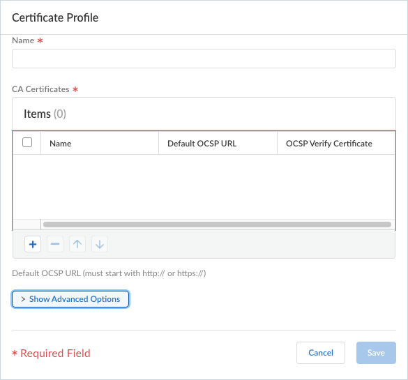 • Show Advance Options—Shows more options for the certificate profile.