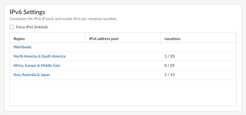 Save your setting.Enable the compute location where the gateway belongs.- Still in the IPv6 Settings section, select a Region.Enable the compute location where the gateway belongs. For example: