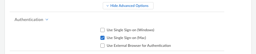 - Select ConfigurationNGFW and Prisma AccessConfiguration ScopeAccess AgentSetupPrisma Access Agent.Add or update an existing agent setting.In the App Configuration section, select Show Advanced OptionsAuthentication and enable Use Single Sign-on (Mac).