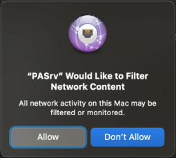 6. Configure a System Extensions payload to automatically load Prisma Access Agent system extensions on the end users' devices and suppress notifications such as the following: