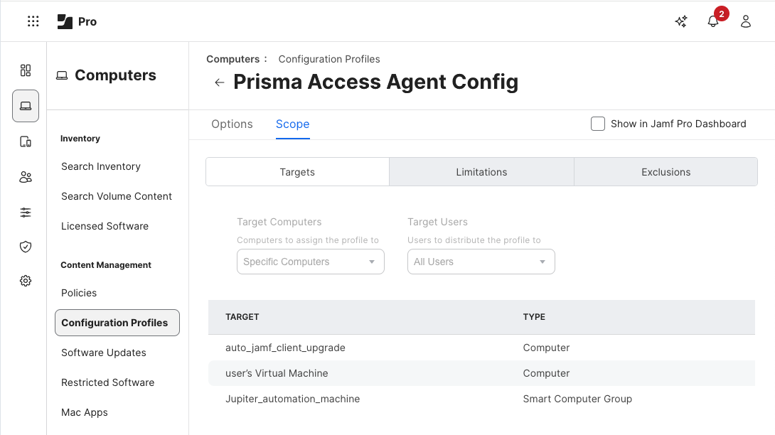 1. In Jamf Pro, select ComputersConfiguration Profiles.