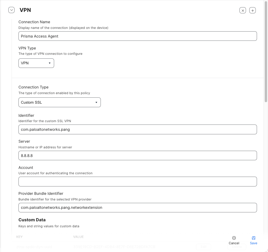 • Provider Bundle Identifier = com.paloaltonetworks.pang.networkextension
