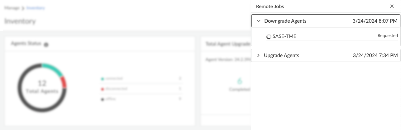 If you downgraded the agent from the device details pane, you must close the pane to see the Jobs button in the Devices table.To view the status of the downgrade, click Jobs. The status of the job appears in the Remote Jobs window.