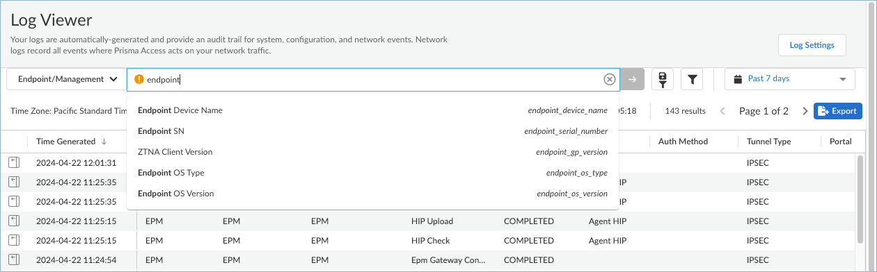 - From Strata Cloud Manager, select Log ViewerEndpointManagement:
