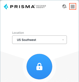 - Open the Prisma Access Agent by clicking theicon from the macOS menu bar, Windows taskbar, or Linux panel.