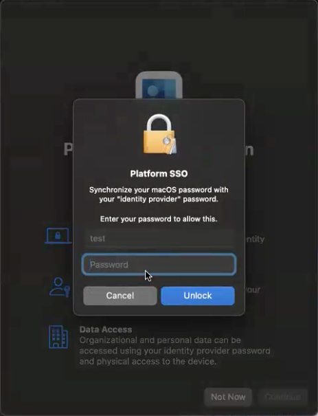 In the IdP login window, such as Microsoft Entra, enter the same credentials that you entered in the Platform SSO window and Sign in.