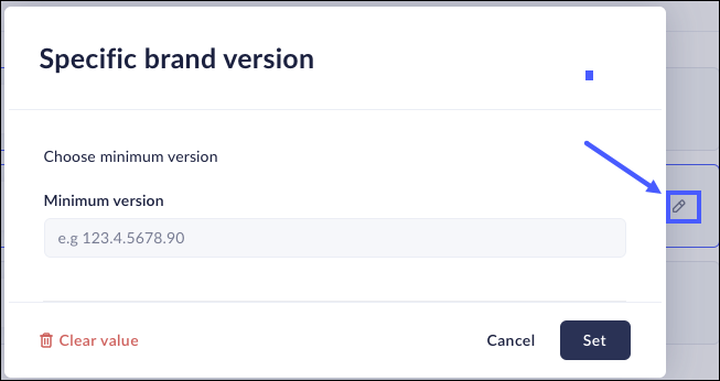 If you need to restrict the browsers to specific versions, click the pencil icon, and in the Specific brand version, enter the Minimum version of the browser that is acceptable.