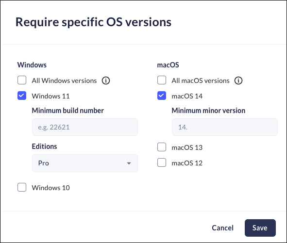 - When you add or edit a device group, add the OS version attribute.Select the Windows or macOS versions, editions, and build numbers to allow into the device group.Selecting All...versions will use all historical versions of the operating systems, including those that re deprecated it yes.