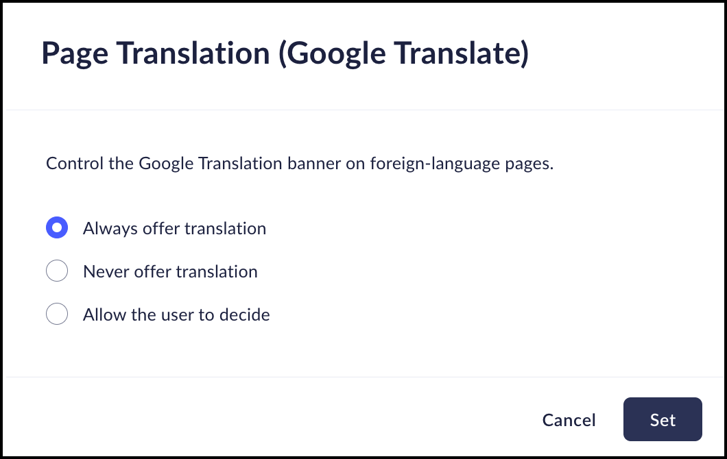 This control allows you to manage the Google Translation banner on foreign-language pages.