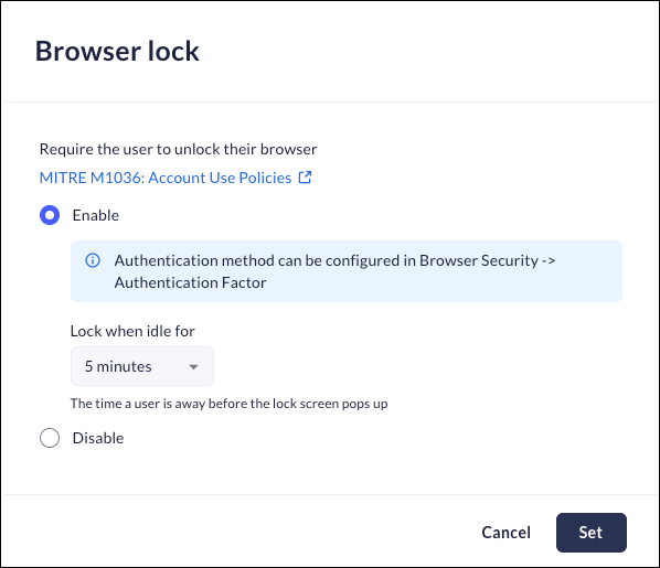 • Disable - the Prisma Access Browser will disable the Browser Lock.