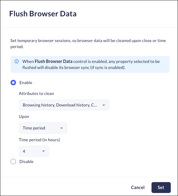 • Disable – disable the Browser flush feature.
