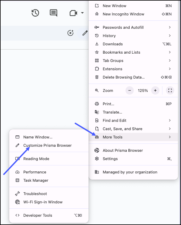 - Open the Prisma Browser menu.