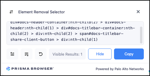 Selector) of the element you wish to hide. The Prisma Browser contains a