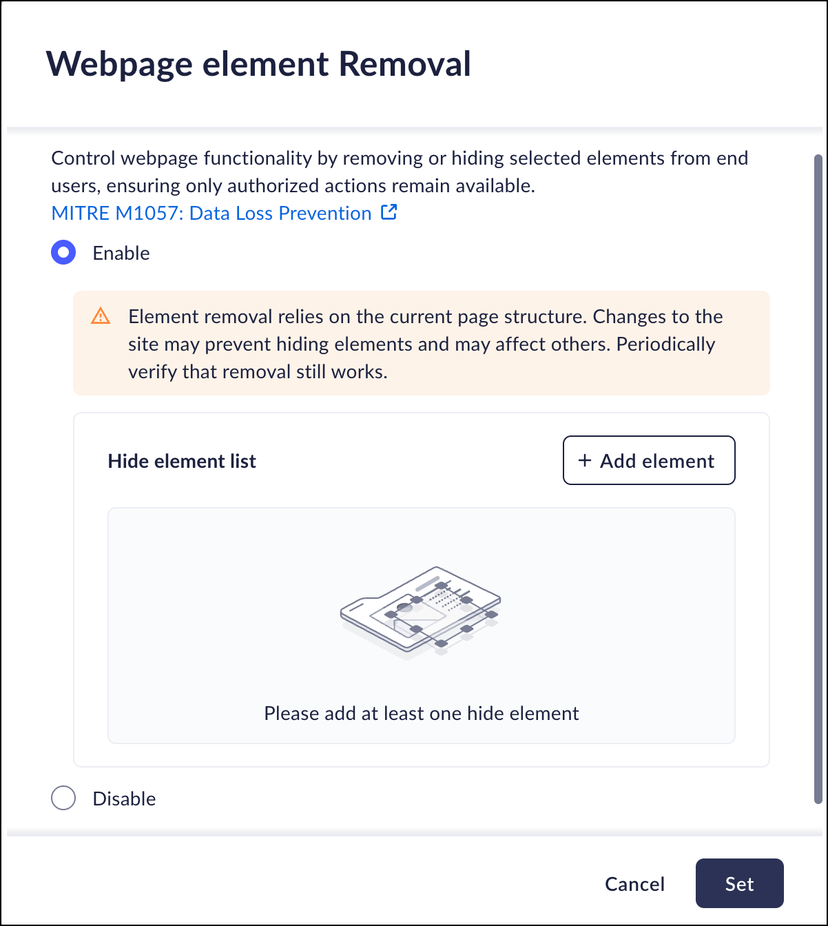 elements, ensuring users cannot bring elements back. In addition, when a policy to