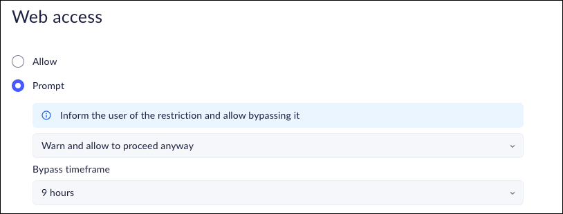 1. In the Policy Rules - Edit ruleWeb access page, select Prompt.