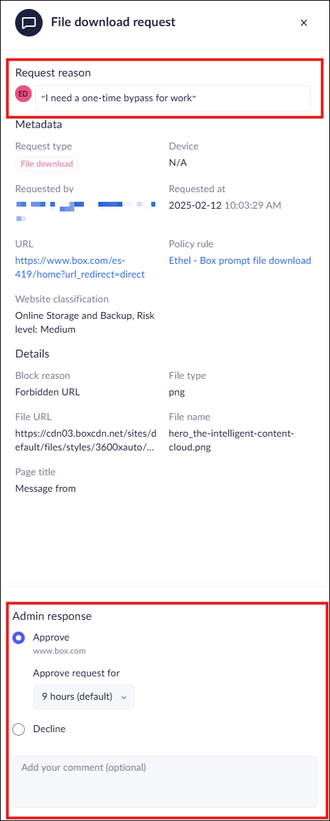 5. Set the duration of the Bypass timeframe, ranging from 10 minutes to 90 days. Select once to allow a single download.