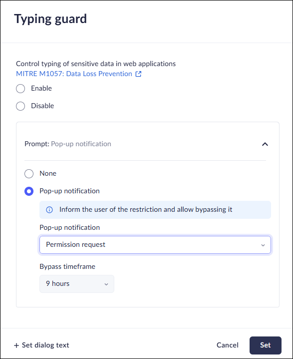 • The typing guard control in Access & Data Control rules allows you to restrict the ability of users to type. This option is available from either the Profiles or from the Data controls, but we recommend using the Data controls to manage policies.