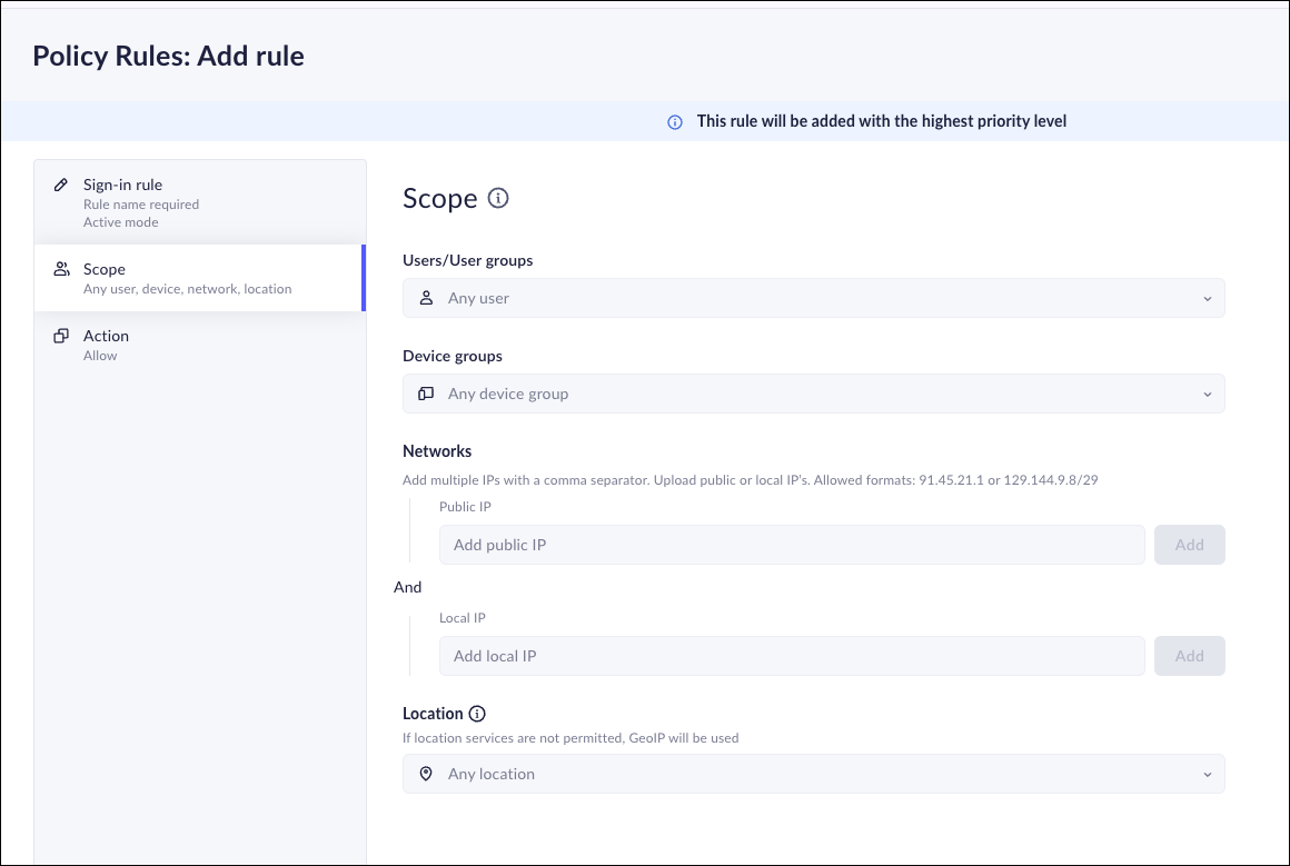 When you create a sign-in rule, you define the scope of the rule. When a user