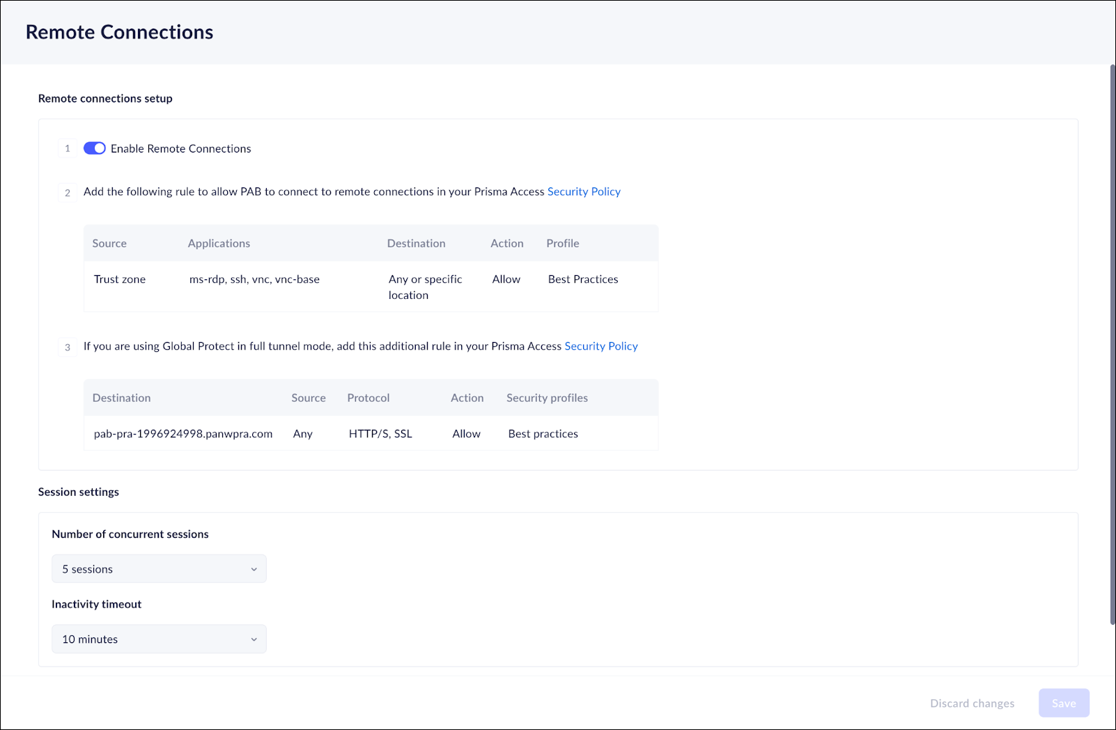 - Go to Configuration → Prisma Browser → Remote Connections.