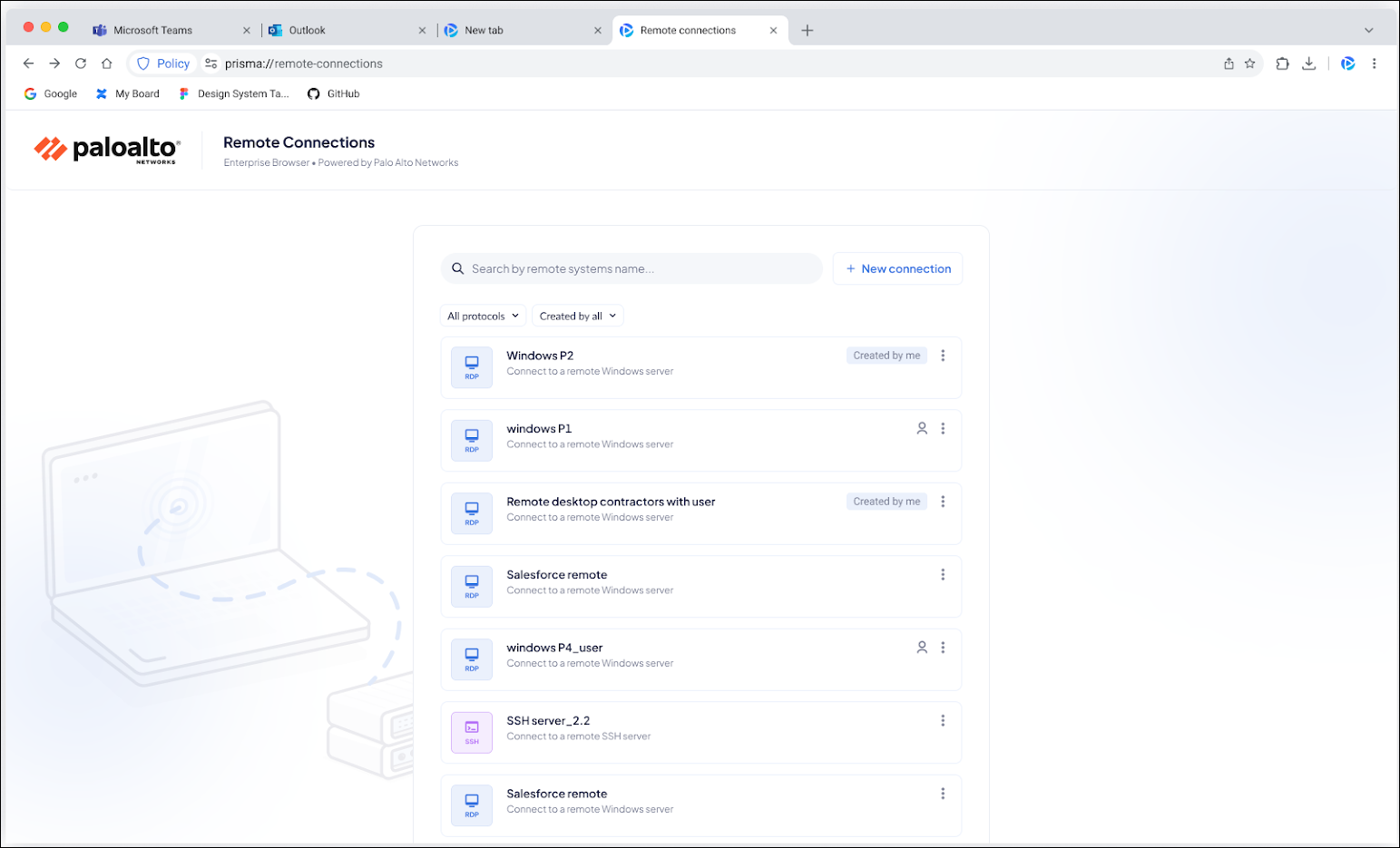 unmanaged or personal devices. Prisma Browser’s Remote Connections enable