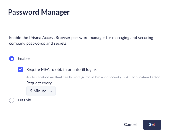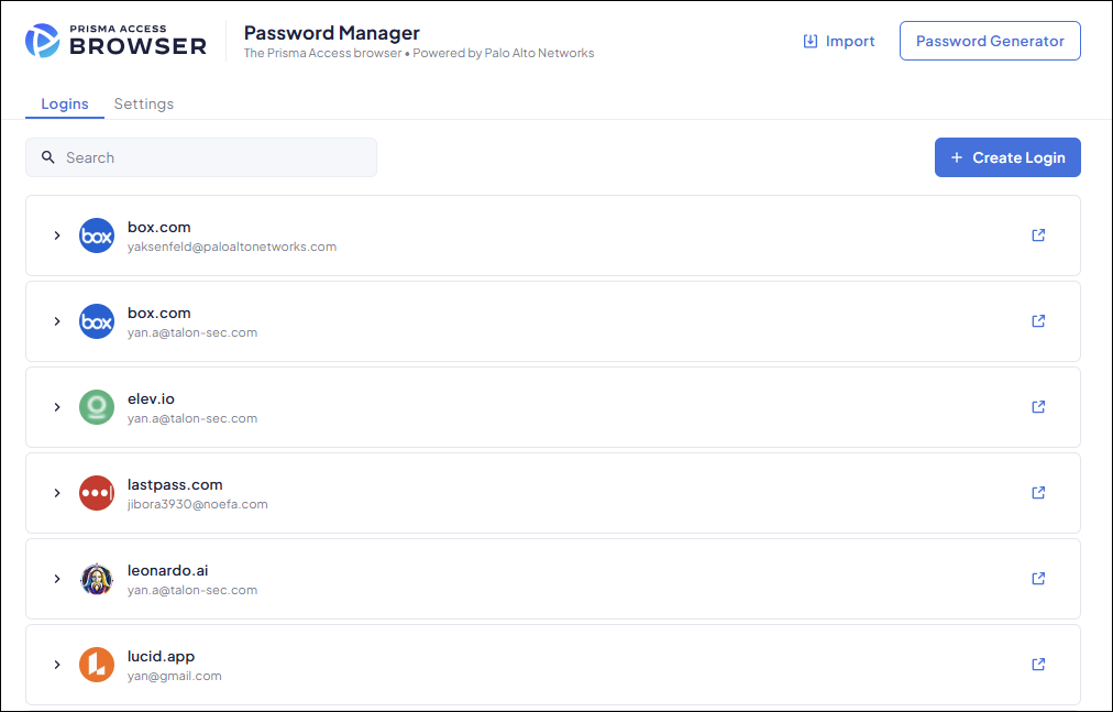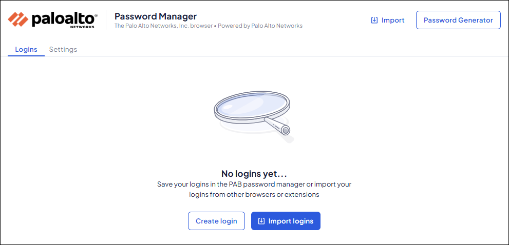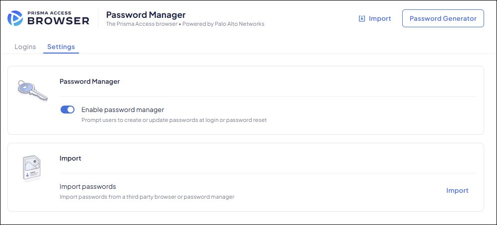 If you previously used the Legacy Password Manager in Prisma Browser, the system migrates your logins automatically to the Enterprise Password Manager.