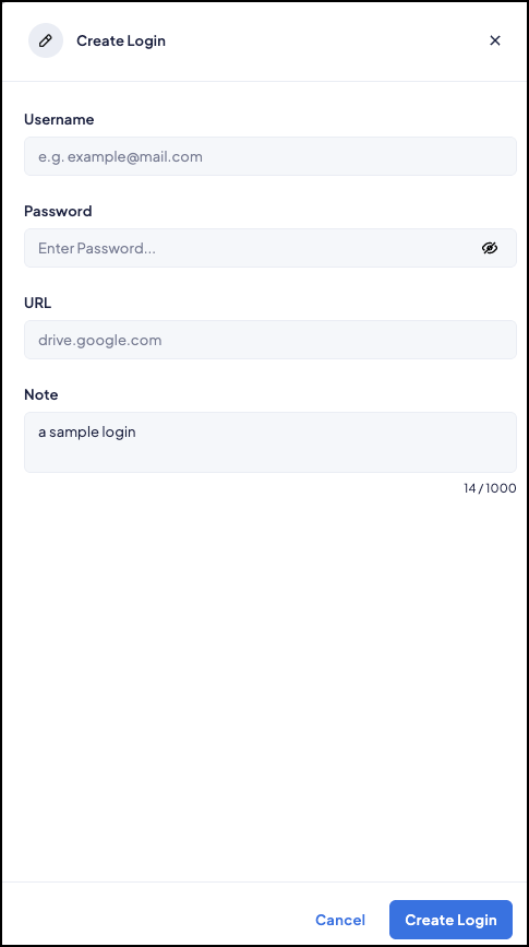 To create a login manually, open the Inventory and click “Create login.” Enter the required details: