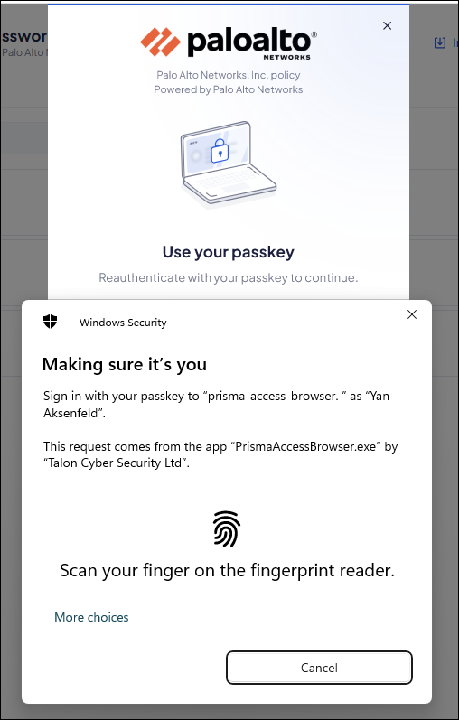 The browser might prompt you for a step-up MFA when you reveal login details.(PIN code, Passkey, or IdP authentication) based on your admin policy rule configured in Browser Security > Browser Hardening > Authentication Factor.