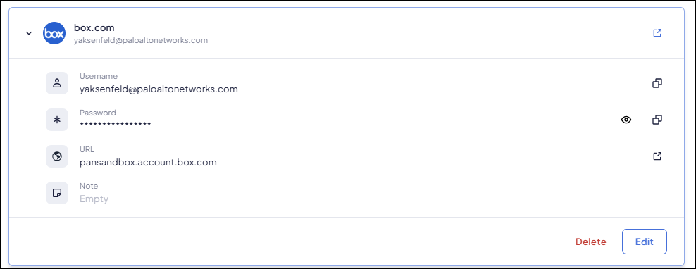 • Click the reveal or copy icons to view or copy the username or password (if allowed).