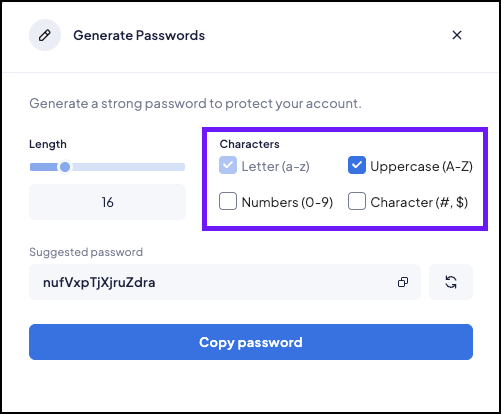 3. The generated password is displayed. Click to copy it to your clipboard.