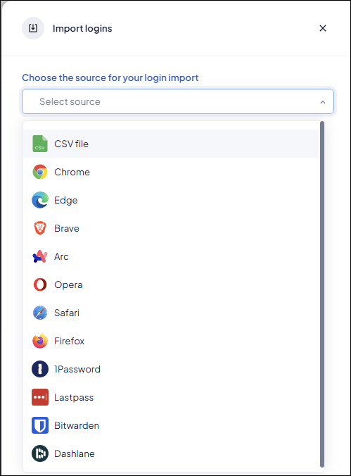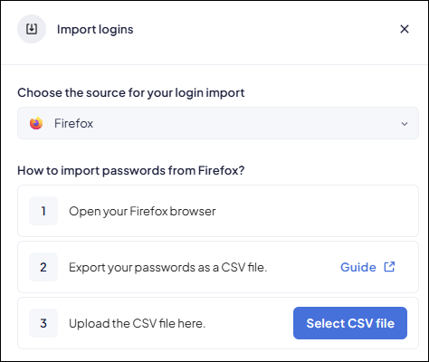3. Export your logins from the source as a CSV file, following the provided instructions.