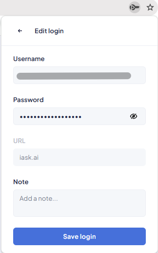 The Password Manager automatically appears when it detects an available login for a URL or when you save or update a password for that URL.