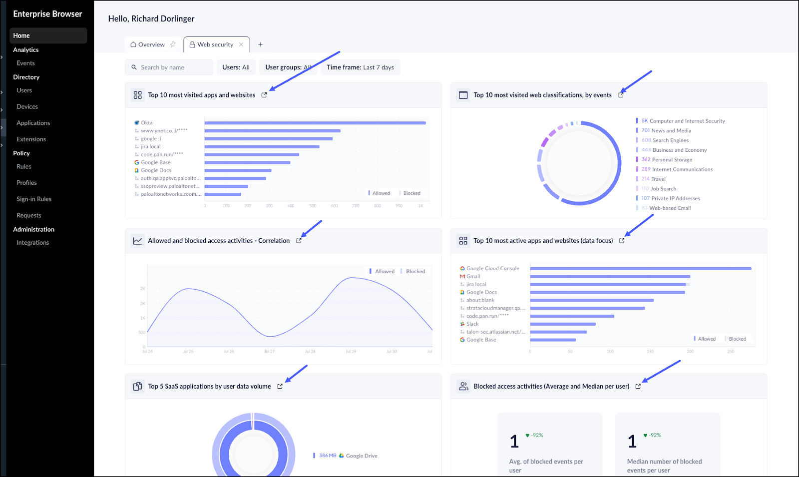Learn how to use the Prisma Browser dashboards to monitor browser users and devices.